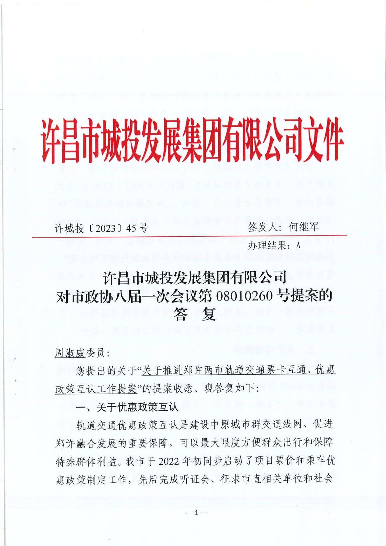 bv1946伟德对市政协八届一次会议第 08010260 号提案的答复